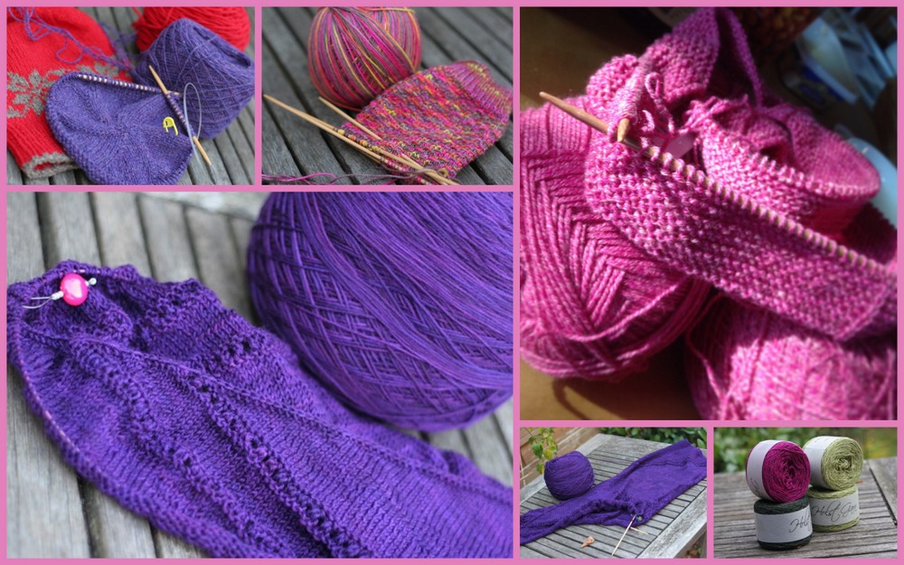 Socken sind immer irgendwo auf den Nadeln, als Unterwegs-Projekt. Und ein paar Mützen sind auch schon entstanden.