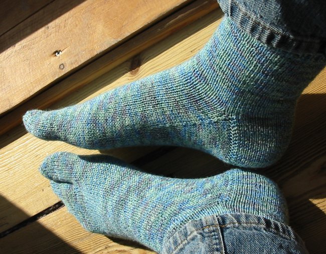 Ich fand diese Zehensocken so lustig, da musste ich unbedingt auch mal welche versuchen. In dieser grün-blauen Farbstellung sehen sie allerdings ein bißchen außerirdisch aus 😉 Gestrickt aus Lana Grossa Meilenweit+Cotton auf 2,5 mm Nadeln.
