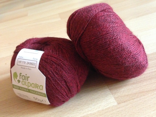- Yarn: 200 g FairAlpaka Fingering, burgundy heather