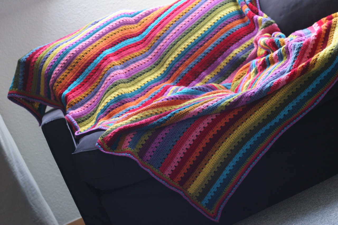 One big satisfying taaadaaaaahhhh moment: my first real full sized crochet blanket is done! I can hardly believe how pretty this turned out, how much I loved working with the cheap economic acrylic Stylecraft Special DK yarn and how utterly relaxing the whole process has been.