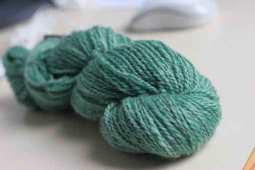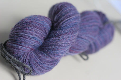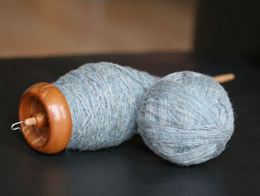 Shetland fiber spun on supported spindles.