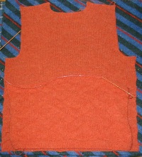 Over the last week or so my knitting time was devoted exclusively to my Diamonds and Purls Vest which is of my own design and intended to go to my mom as a birthday present. I’m working against a deadline here but so far it’s progressing okay. The back ist done and the front slowly grows to the point where you work it seperately to form a v-neck.