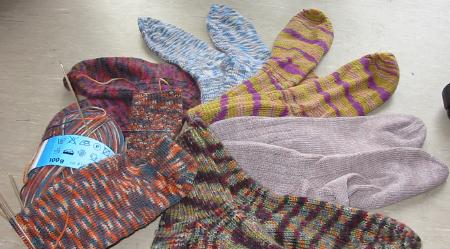 Too many to count. I’ve been knitting socks for at least 10 years now and each family member gets at least one per year, be it for Christmas or their birthday. This adds up to quite a few pairs over the years.