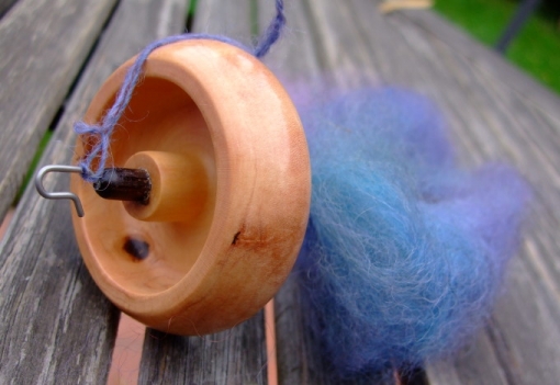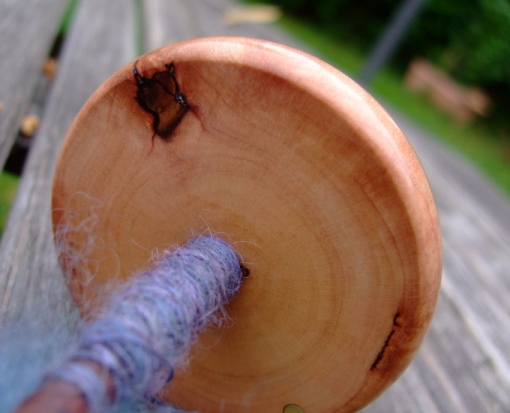 Back in 2005 I bought a Bosworth Moosie. The whorl is Moose antler. Very lovely, very rare, very exclusive and today at a price where I might hesitate to buy one. A while ago I realized that the shaft on my Moosie spindle was split right where the hook sat. The Bosworths kindly offered to replace the shaft for no additional cost. Moosie came back in July all fixed and ready to spin.