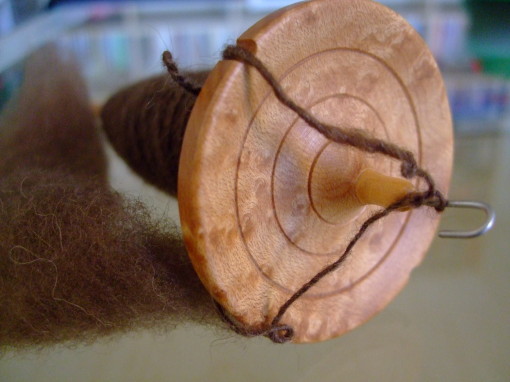Comment: The spindle is very lightweight and proved ideal for spinning the very fine Buffalo Fiber I got with my Greensleeves spindle. The Buffalo reminded me a bit of baby camel fiber only in a dark chocolate brown. It’s incredibly soft and cozy. I ended up with 10 grams/65 meters for yarn.