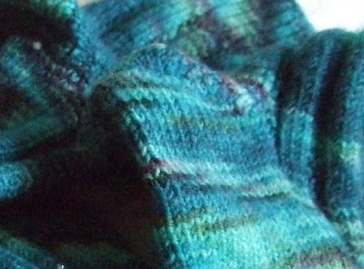 Did I ever tell you that my handknit socks have to withstand the most horrible treatment imaginable? They go through the washer with all my other clothes at 30-40°C, they have to endure fabric softener and last but not least they have to put up with my feet. Commercial sock yarn is usually more than up to these tasks without complaining. So far some did better than others but all in all my socks are usually with me for a long, long time. You want to know what happend to this one pair of socks knit out of lovely Colinette JitterBug sock yarn that’s supposedly „easy care Merino“? It gets treated just the same as the other socks in my sock drawer because that’s what I always do with ALL my socks, of course. I seem to remember that the label read „easy care“ but there was also this little symbol incicating a washing machine. So what can possibly happen? Obviously „easy care“ is NOT the same as „machine washable“ even though it might take a couple of washings to show. What can I say other than „May they rest in peace“?! Maybe that I’ll stick to real commercial sock yarn in the future or at least to the stuff that’s been 100% washing machine tested?